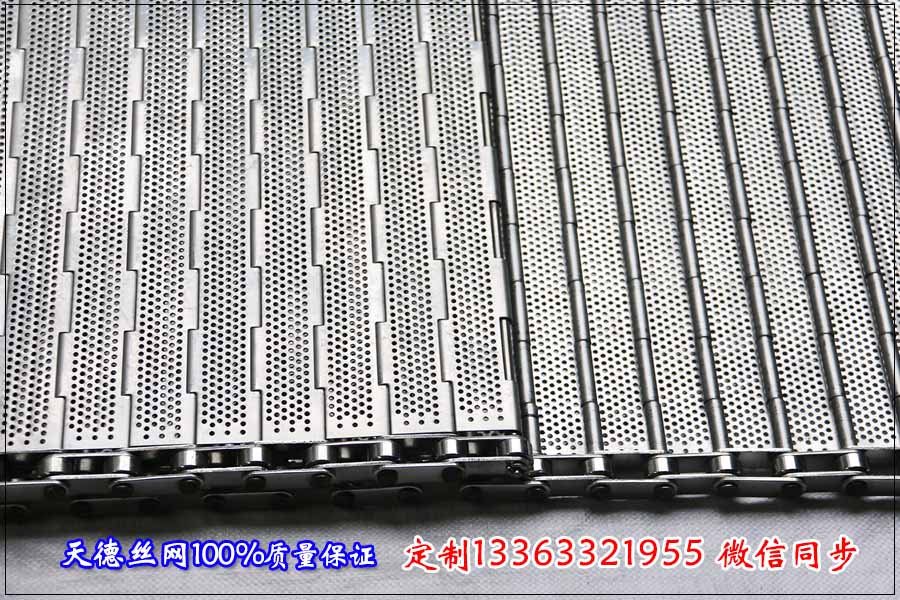 河北天德絲網制品有限公司生產不銹鋼網帶、輸送鏈板、擋板鏈板、不銹鋼鏈板網帶、超寬輸送網帶、平板輸送帶:13363321955 http://m.ztqzj.com/