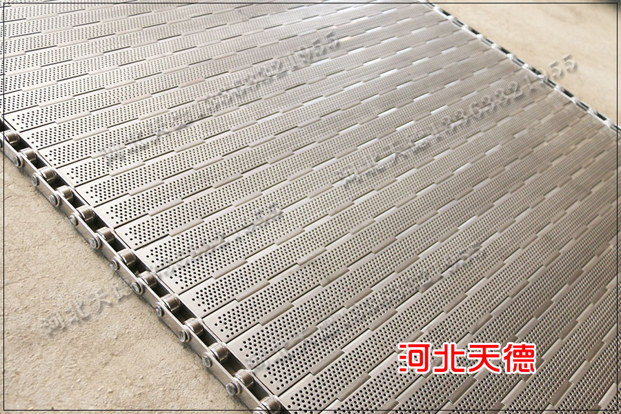 打孔輸送鏈板廣泛的應用在烘干行業和清洗行業中,因為打孔輸送鏈板可以在烘干行業中使用可以增加透氣性,提升烘干產品的速度,用在清洗行業中可以淋水,保證在輸送的過程中將多余的水分淋出去。