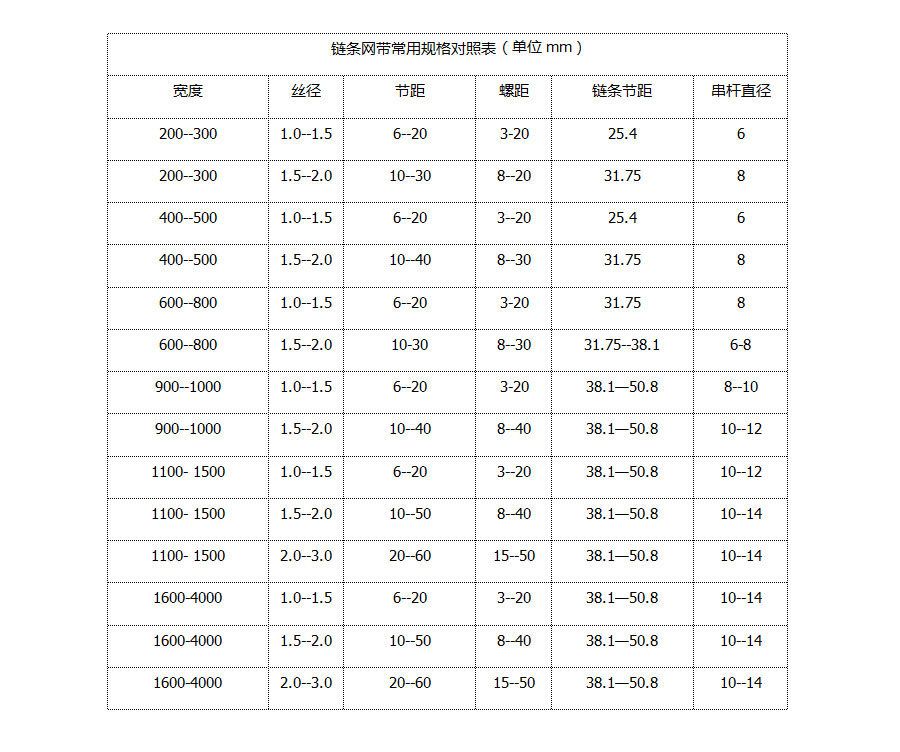 不銹鋼網帶屬于非標準件,我們將根據你提供的規格長寬,材質,絲徑,編制結構尺寸,支軸直徑,支軸間距,鏈條型號等數據核算成本和制作.