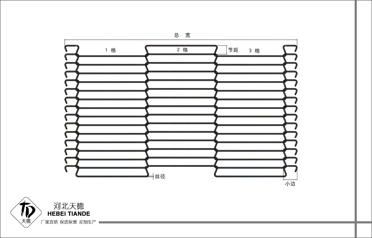 乙型網帶說明: 節距分隔一般按用戶要求定制,屬非標準輸送網帶。